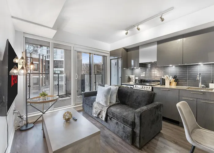 1-pokojowy Rivetstays - The Jarvis jest położony maksymalnie 1 km od takich obiektów jak Teatr Massey Hall, prawie 15 min spacerem od stacji metro Dundas. Do dyspozycji Gości są 1 sypialnia oraz prywatne łazienki z oddzielną toaletą, wanną i prysznicem.